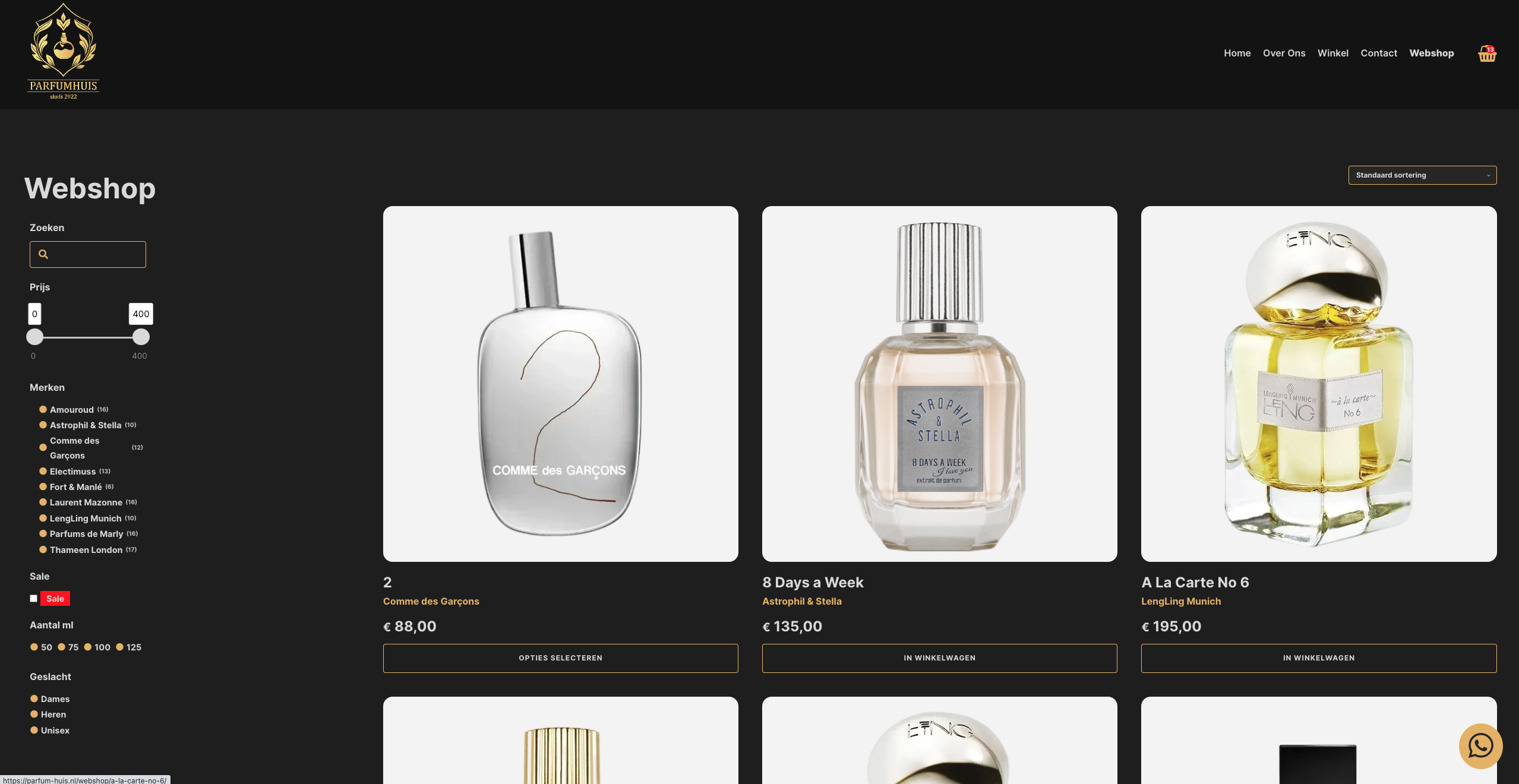 Aanvankelijk zouden we eerst alleen een website maken zonder webshop. We hebben geadviseerd om toch een webshop te nemen met de focus op niche parfum.